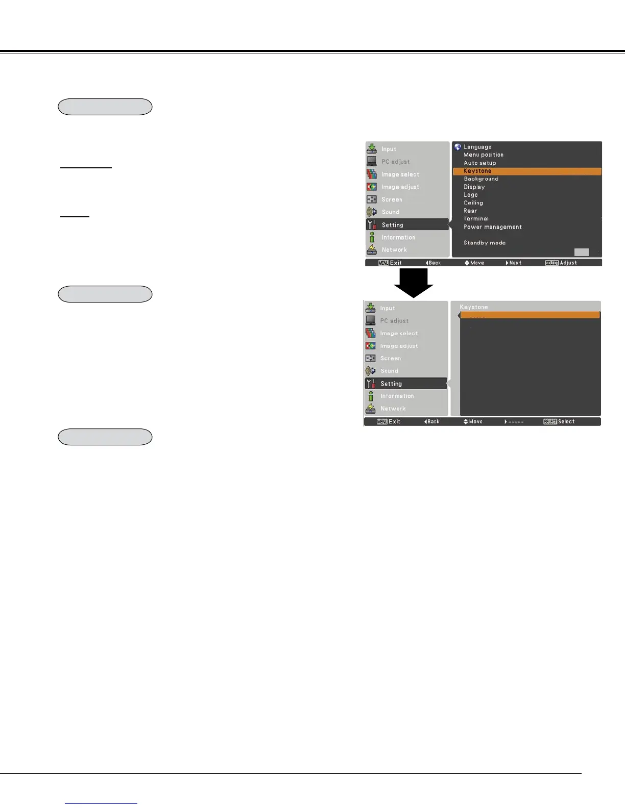 This function is used to adjust keystone distortion of the