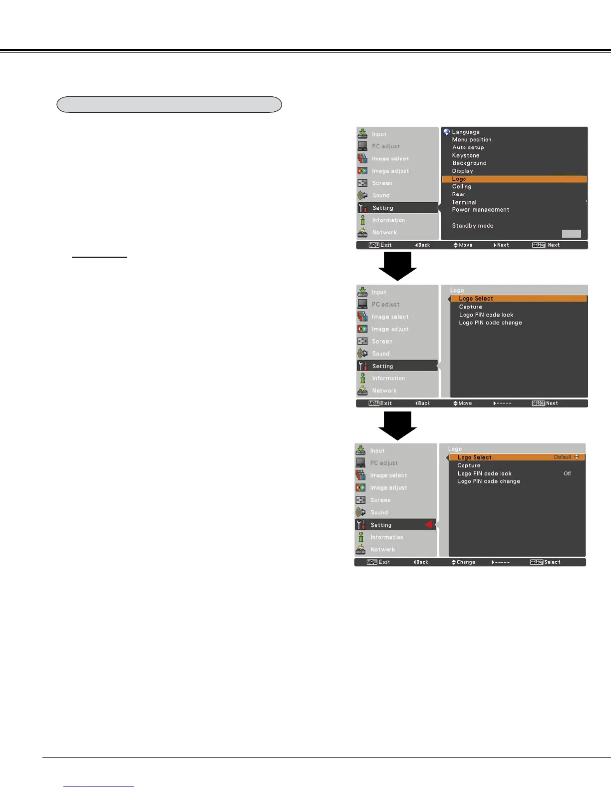 Logo select, capture, Logo PIN code lock and Logo PIN
