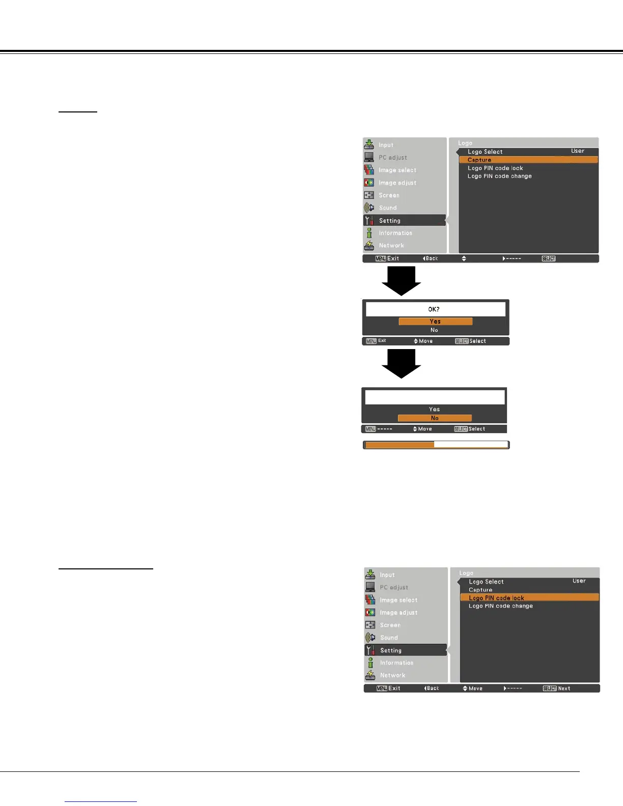 • When Logo PIN code lock is set to On, capture cannot