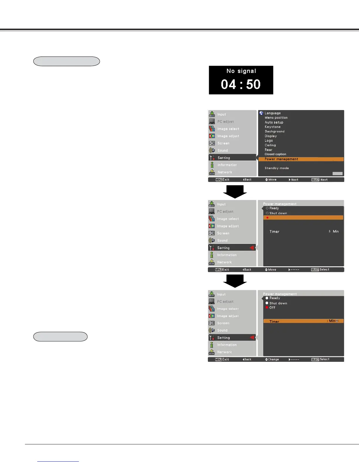 the lamp life, the Power management function turns off the