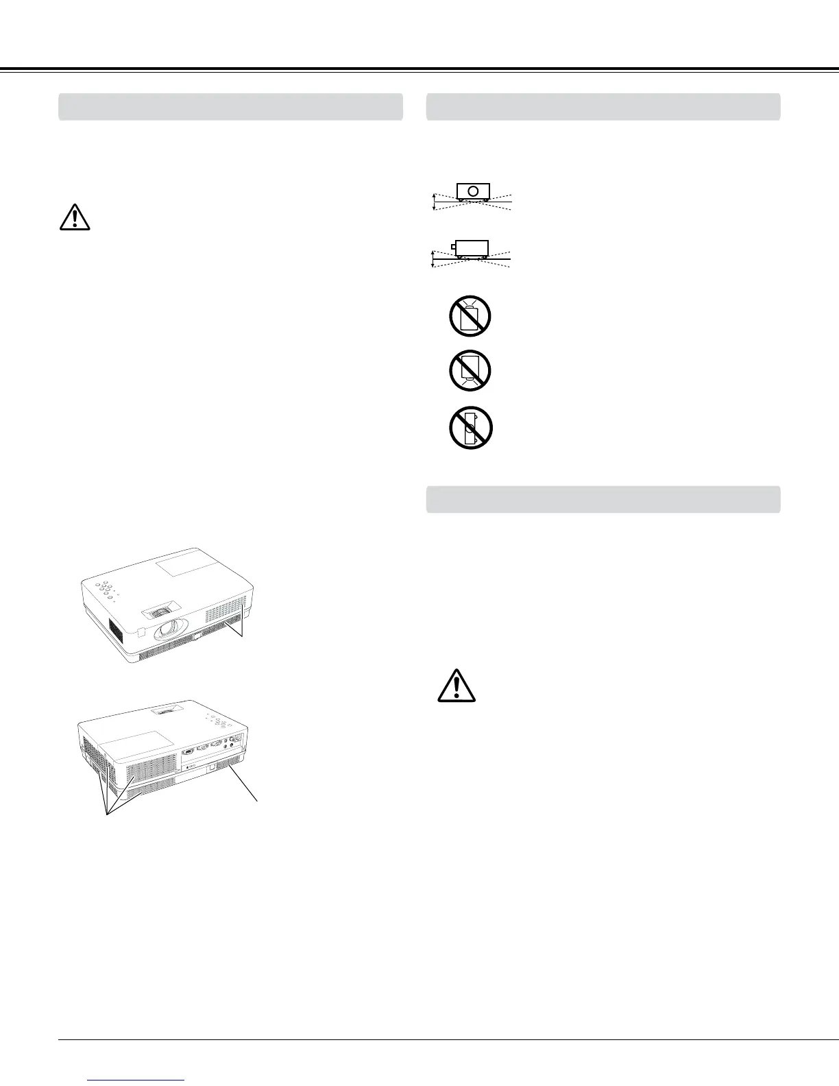 or installing the projector, the following precautions