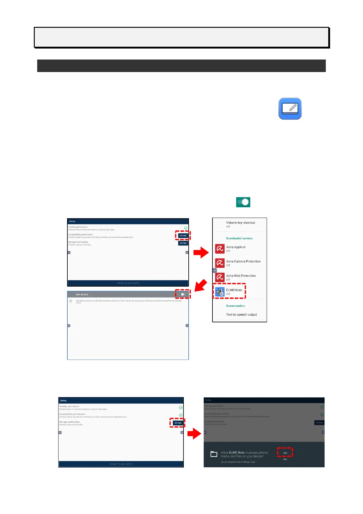 Tap SETTING” in the Setting screen. Then tap “Allow” to allow ELMO Note to access the