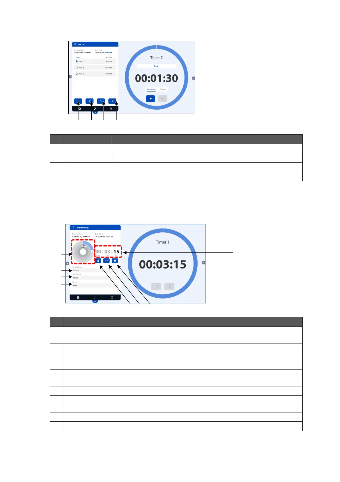 To edit the selected task. The Timer settings screen will appear.