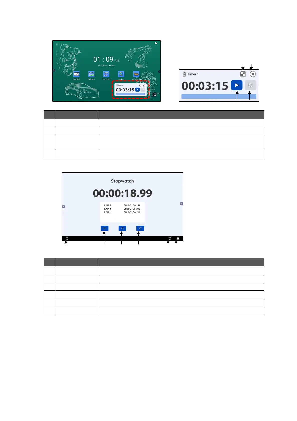 To start the timer. Tap this icon again to stop the timer.