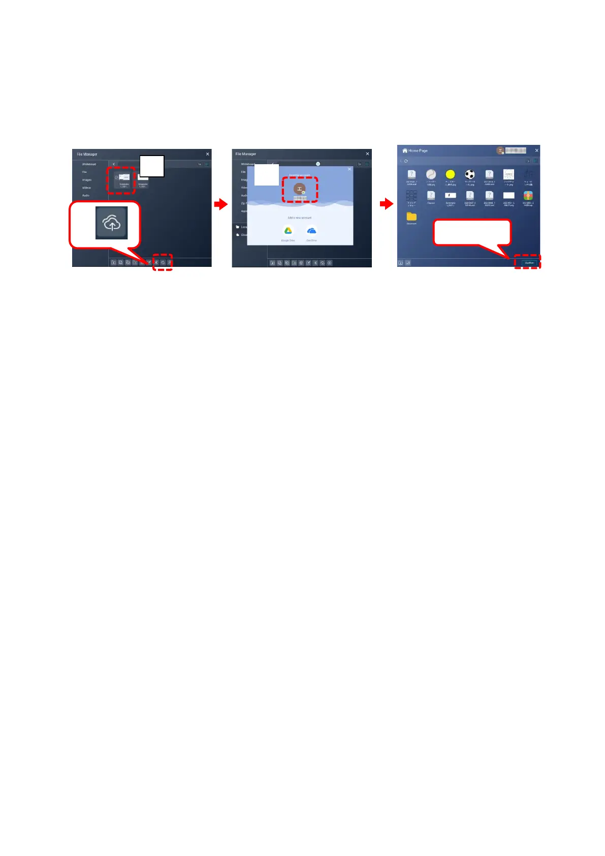 3 The Login screen will appear. Select the account and go to the cloud folder.
