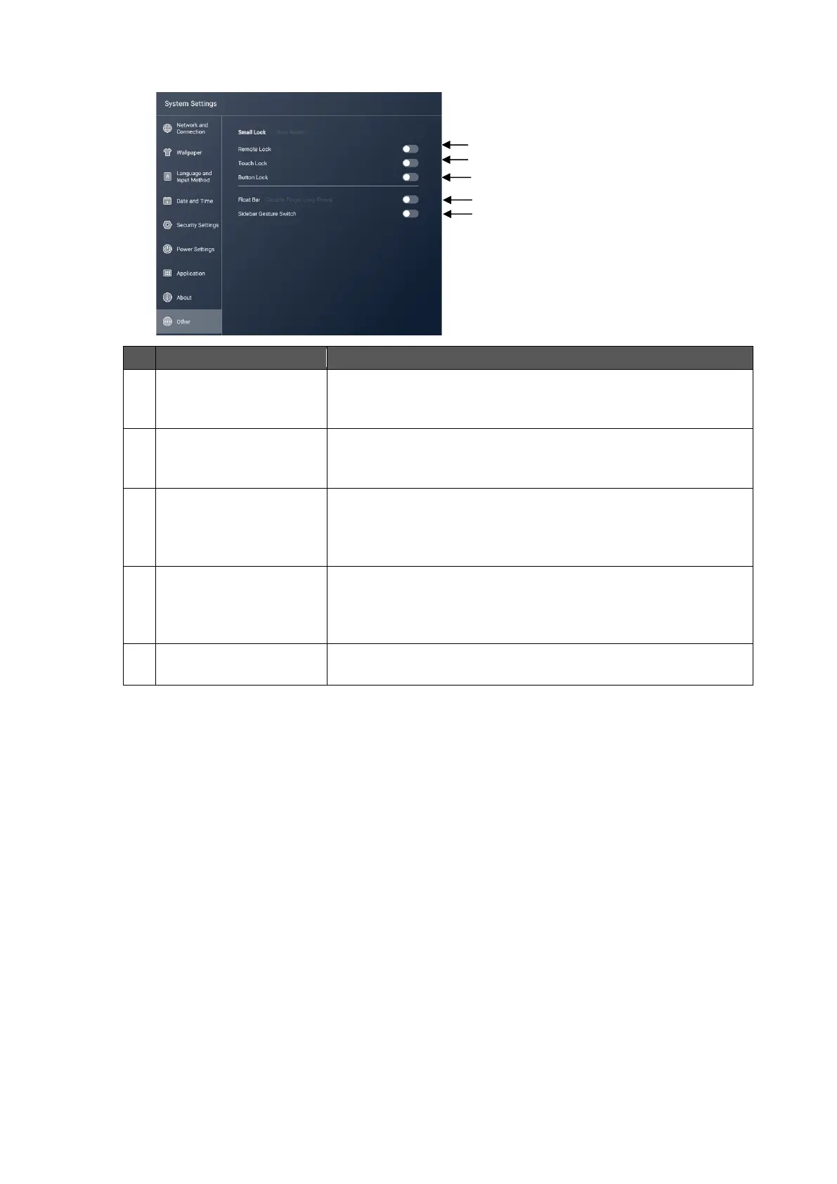 Others (Lock settings)