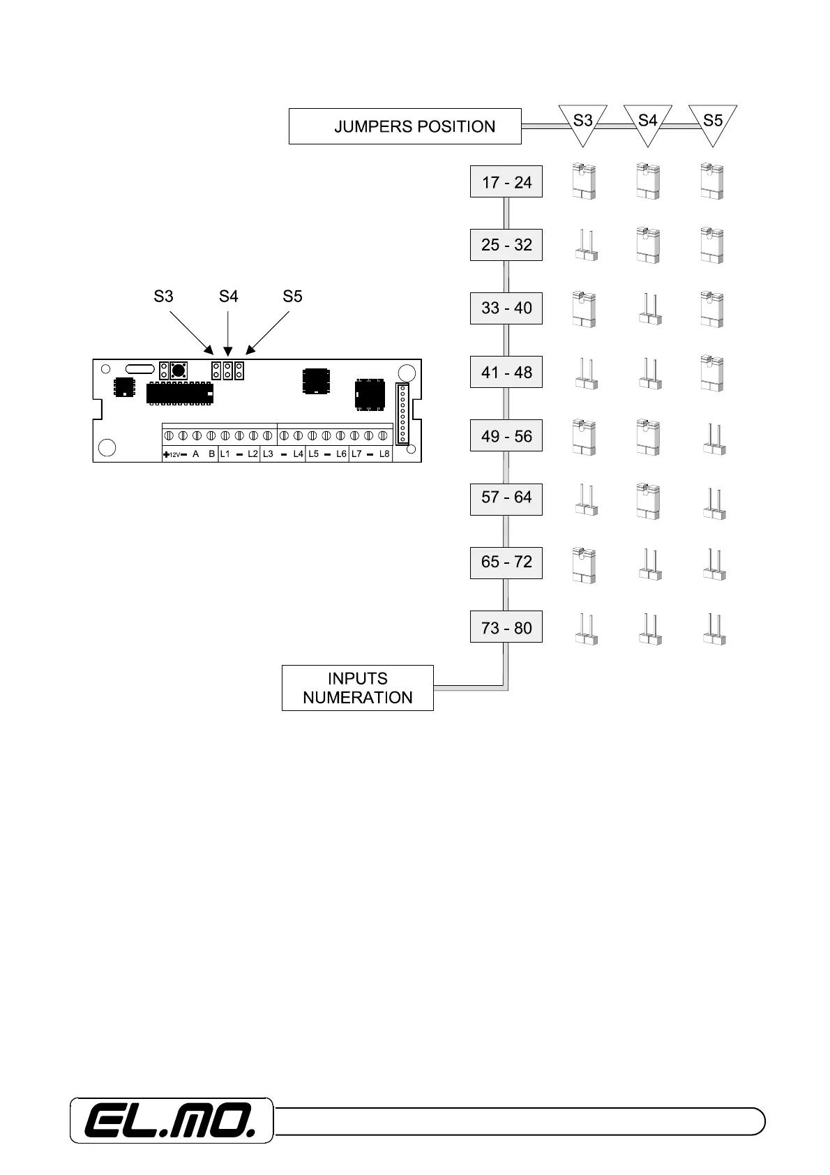 Diagram of addresses programming for the CP8/TR8 AND CP8/TR8B transponders.