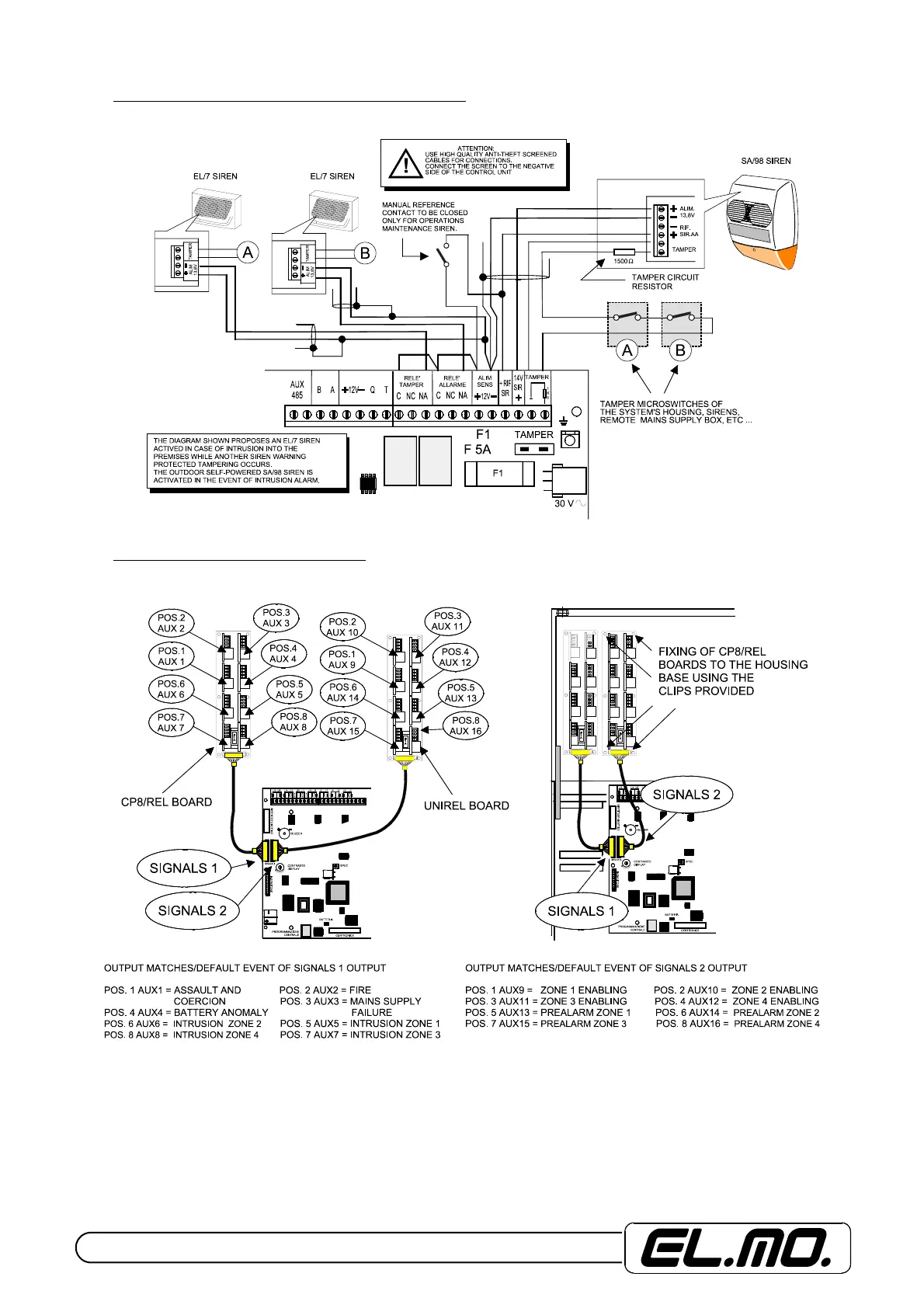 Connection of self-powered sirens to the control unit’s terminal board.