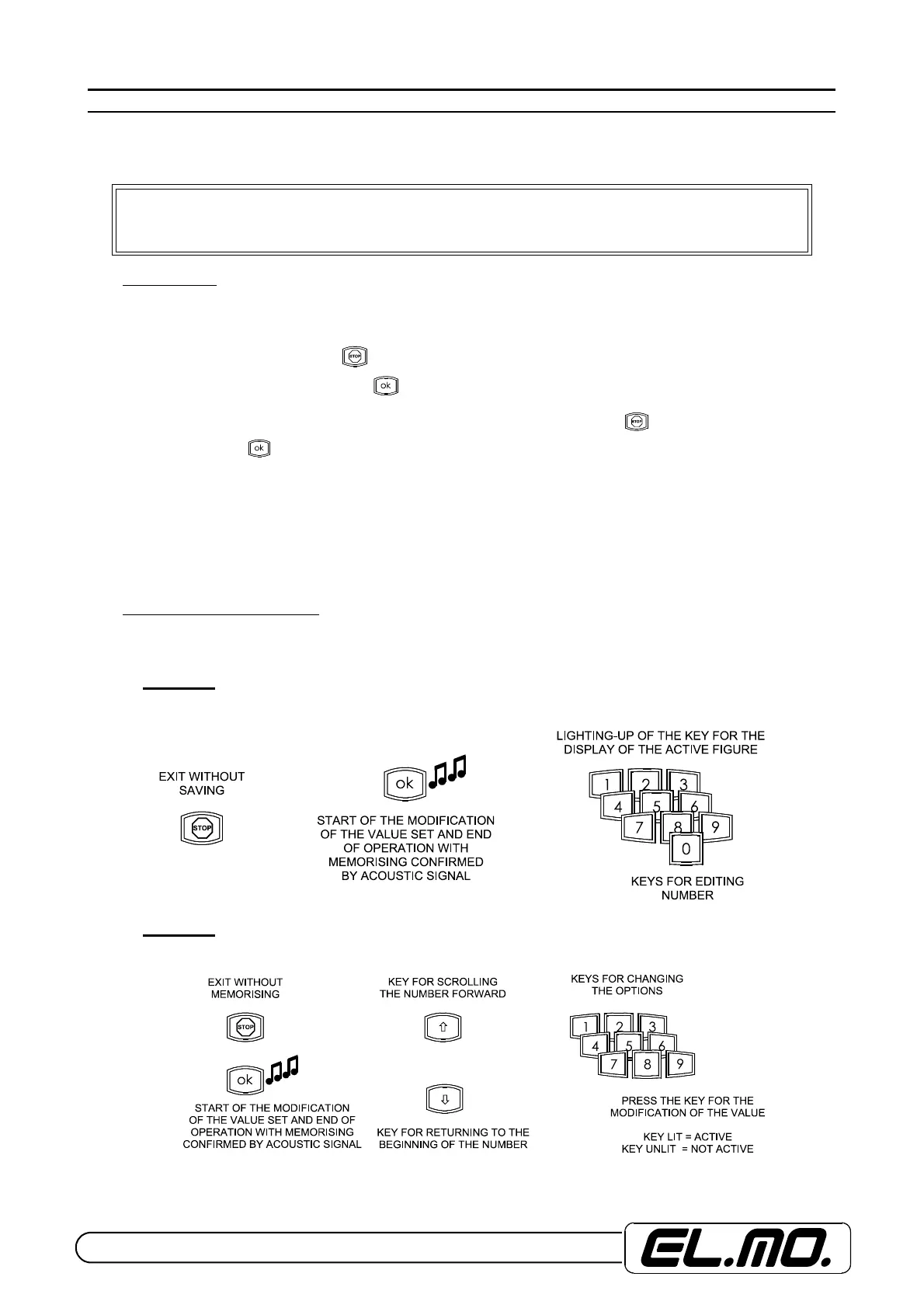 changes or by using the key in order to confirm the modifications (an acoustic signal will indicate the modification