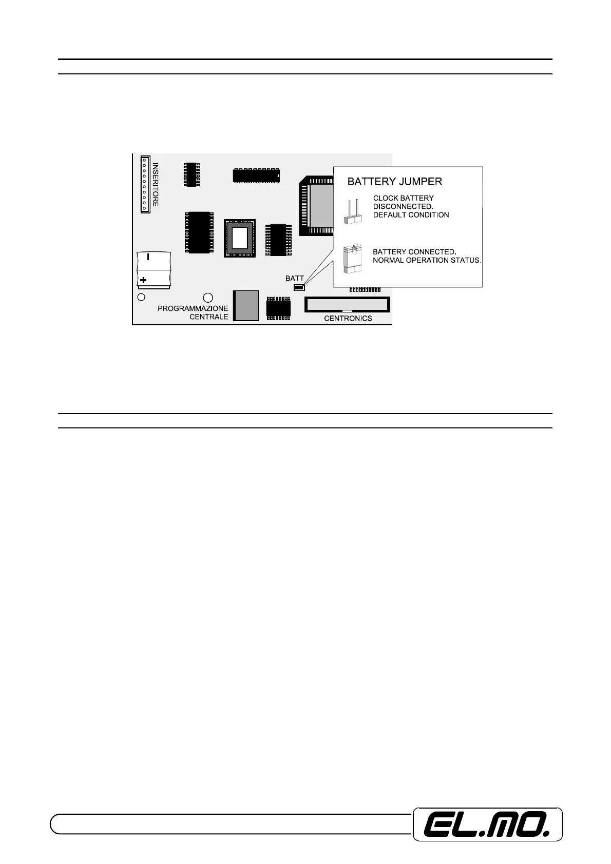 default. The normal operation is granted by the BATT jumper's closure for Nichel Cadmio battery insertion to permit the