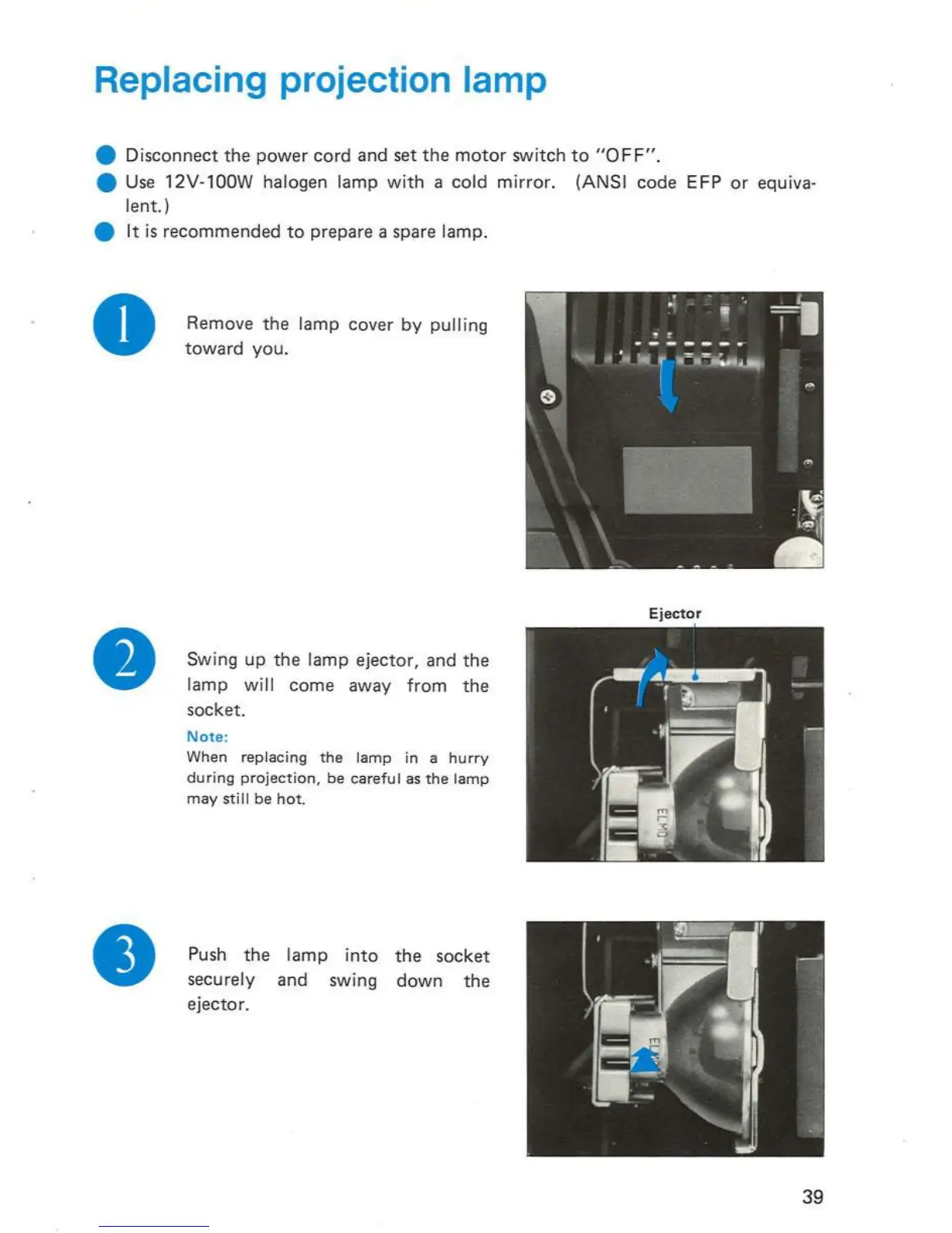 12V-100W halogen lamp with a cold mirror. (ANSI