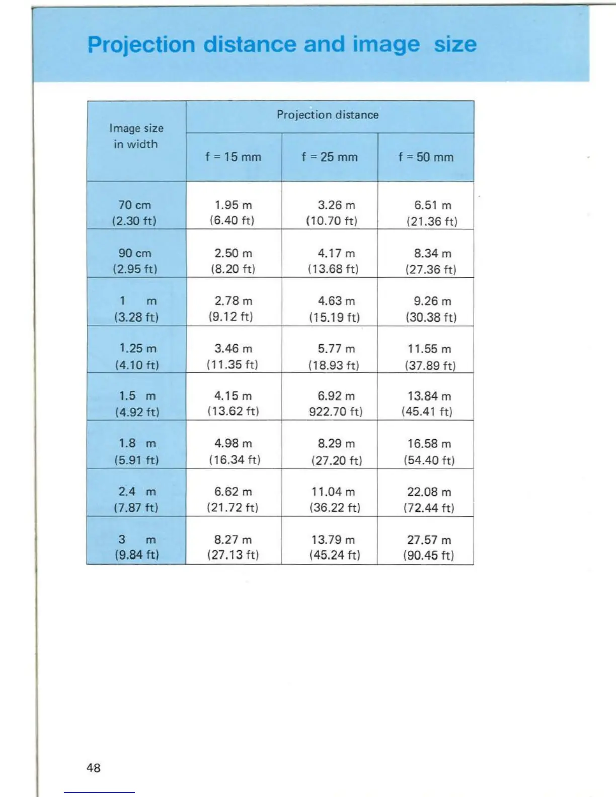 Projection distance and image size