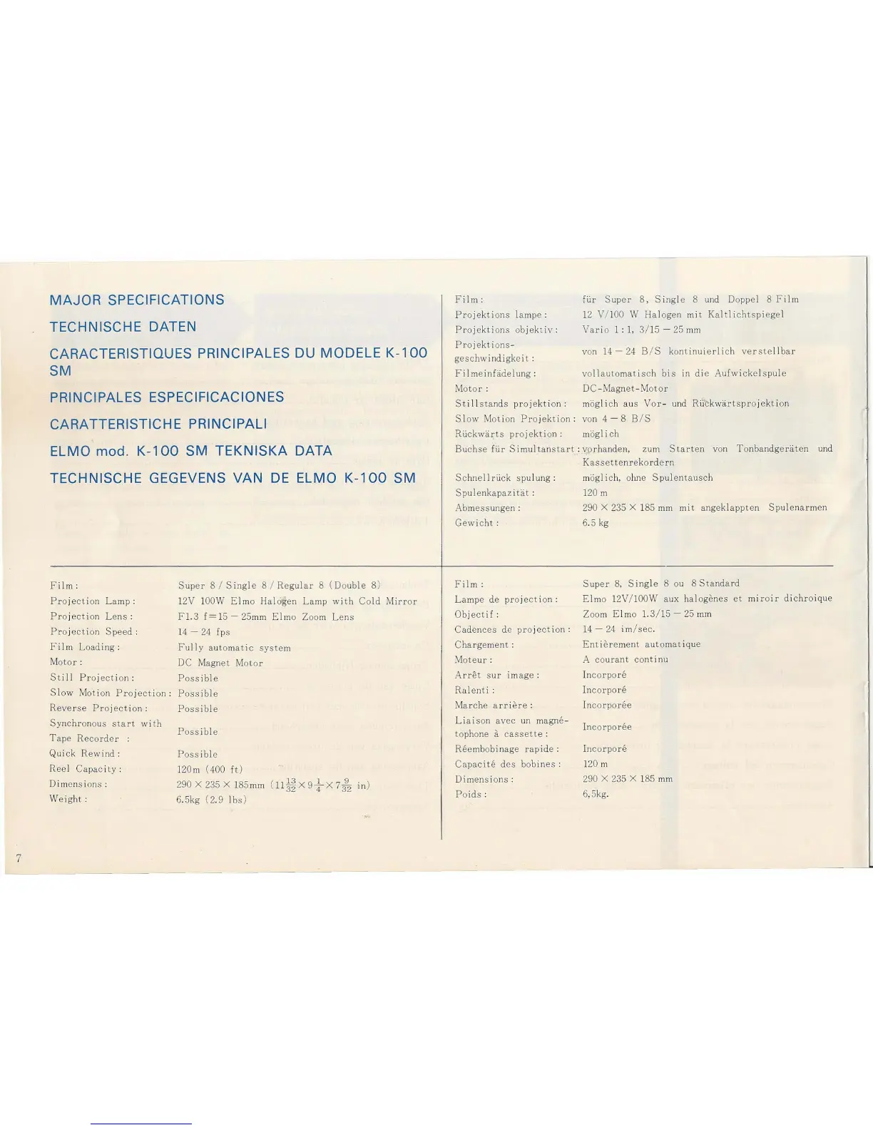 Elmo k-100sm - MAJOR SPECIFICATIONS