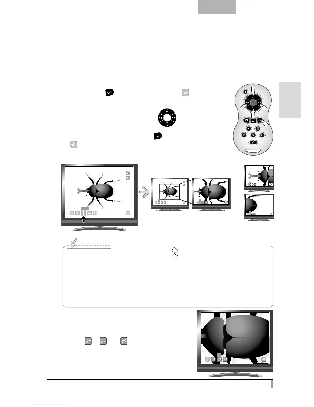 zoom buttons on the remote control, digital zoom is released and the scroll function works