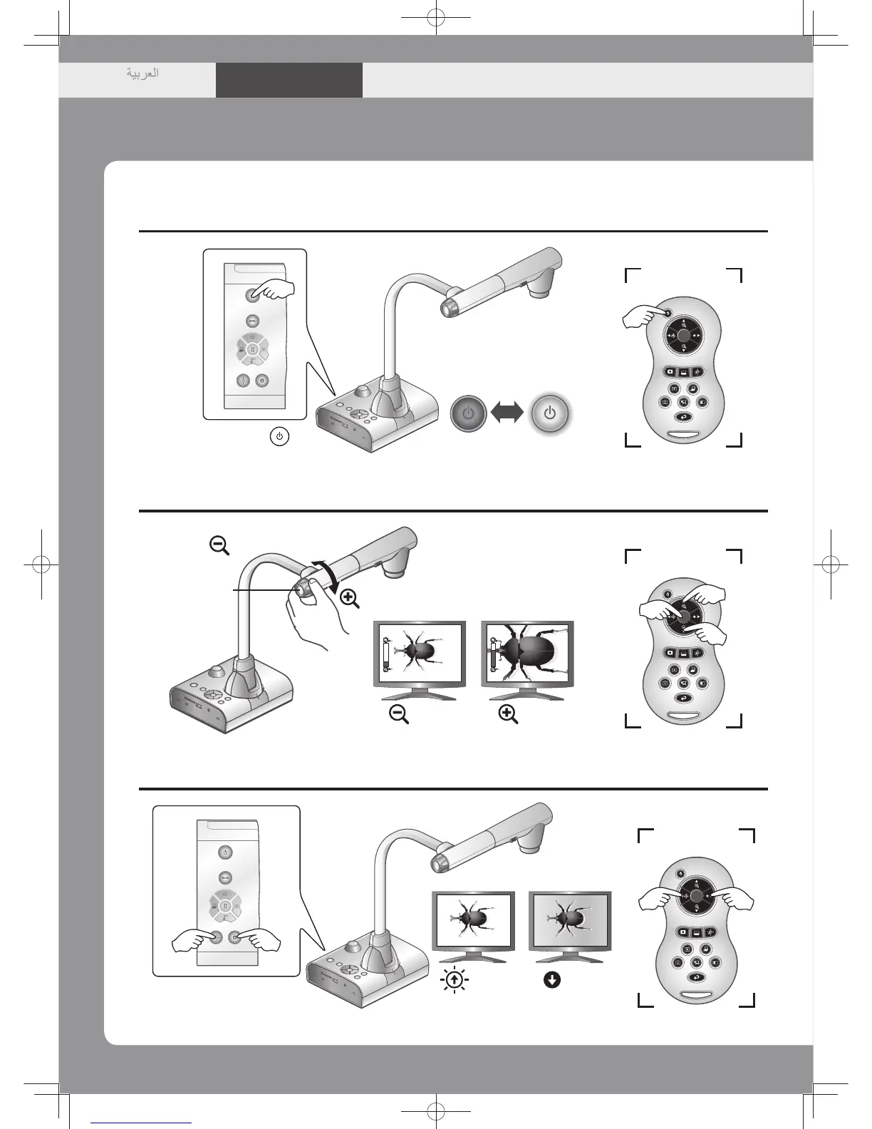 Elmo L-12id - Uso; ①Encendido;Apagado; ②Ajuste del Tamaño y el Enfoque; ③Ajuste del Brillo