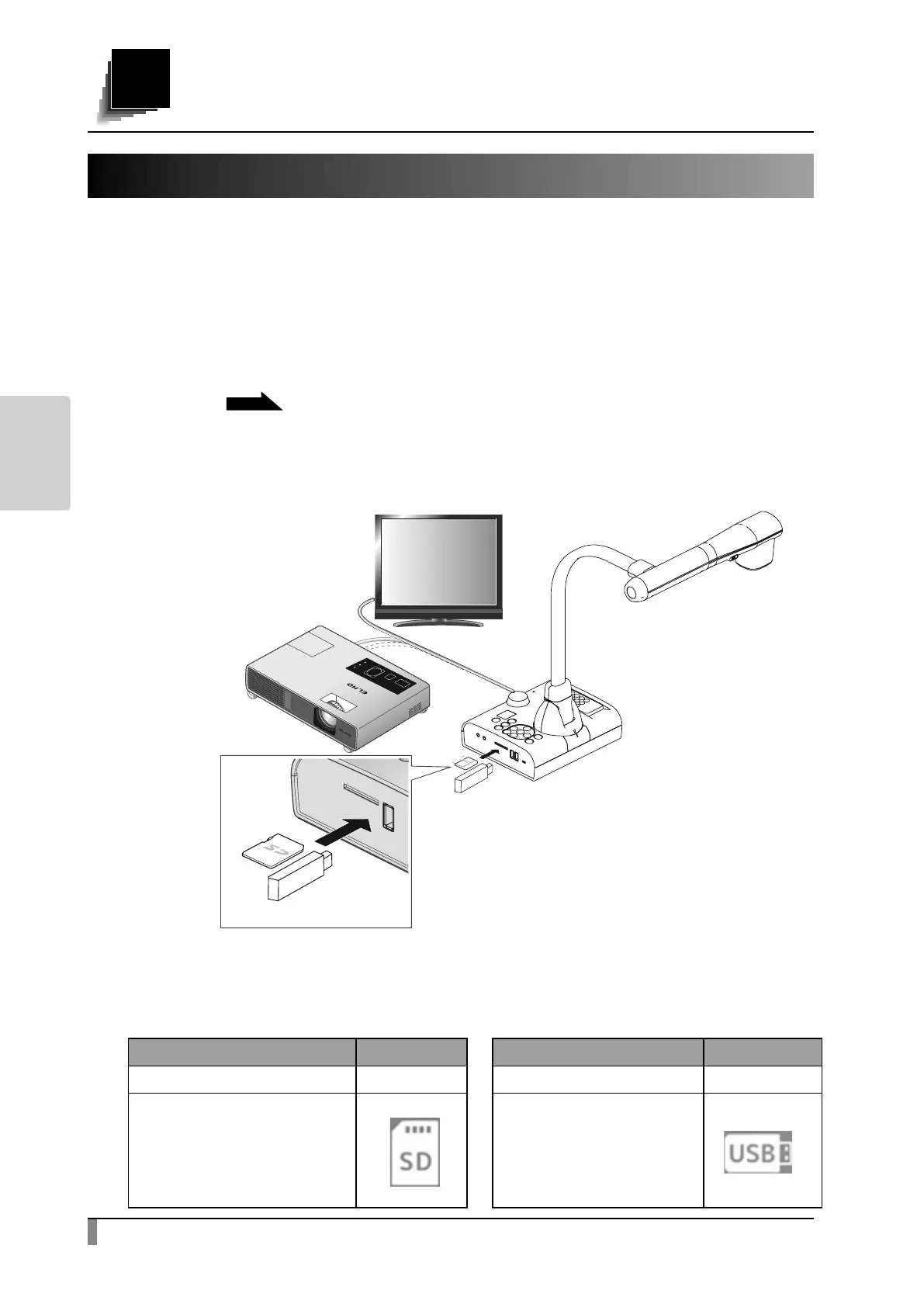 Insert an SD card (SD/SDHC, commercially available) or USB flash drive
