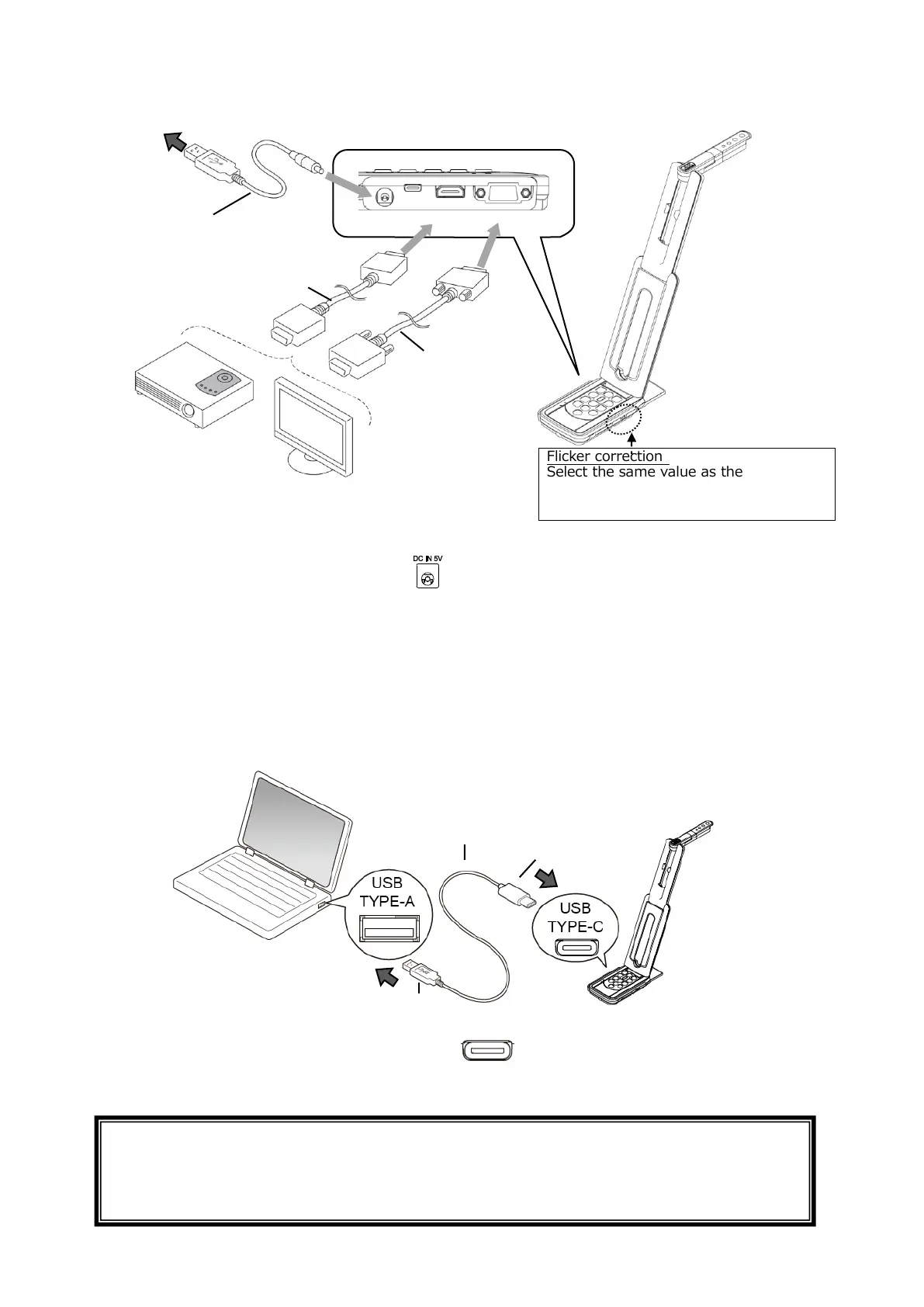 2. Connect the supplied DC power cord to [ ]. Connect the USB plug to the supplied AC adapter.