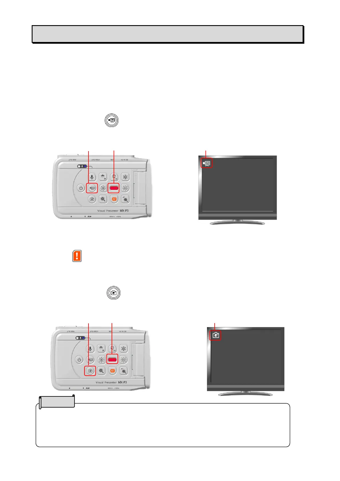 Save a still image Status LED flashes red Icon for still image recording