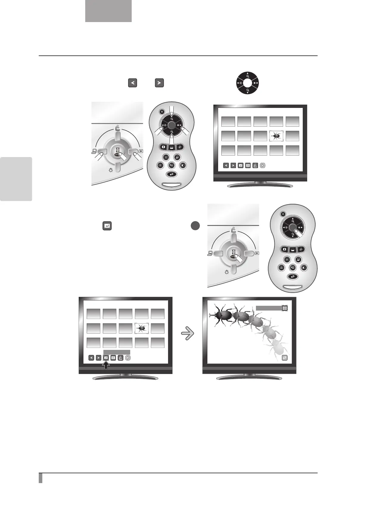 ] and [ ] buttons in the menu or the [ ] button on the remote