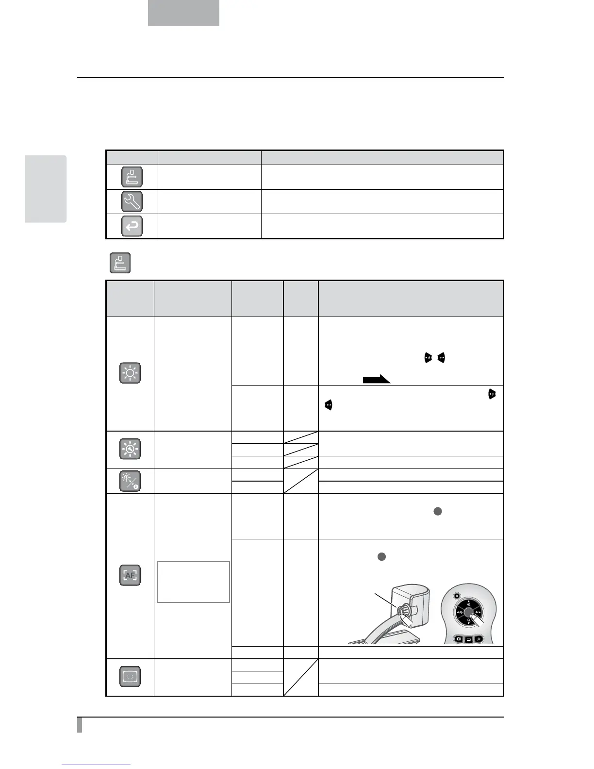 Camera Controls To display the setting menu for camera image.
