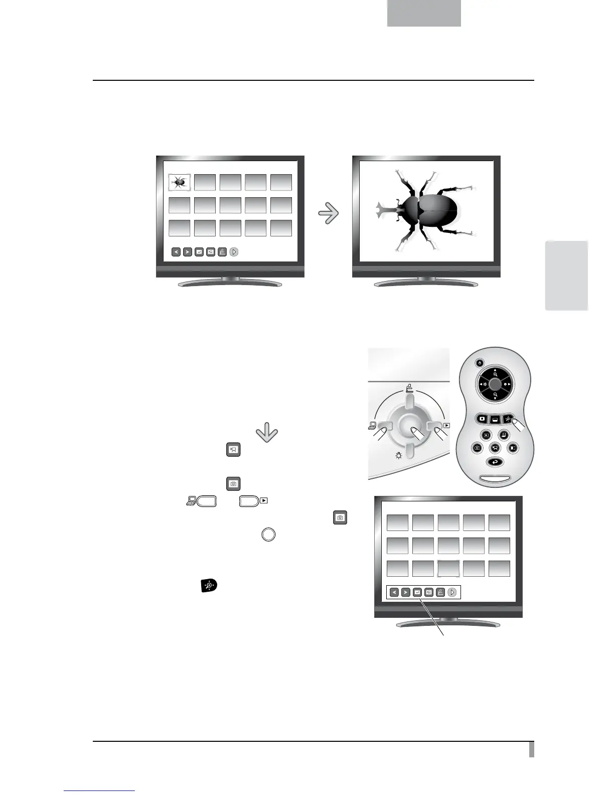 You can display a picture you selected from the thumbnails (list of pictures/movies) full-screen.