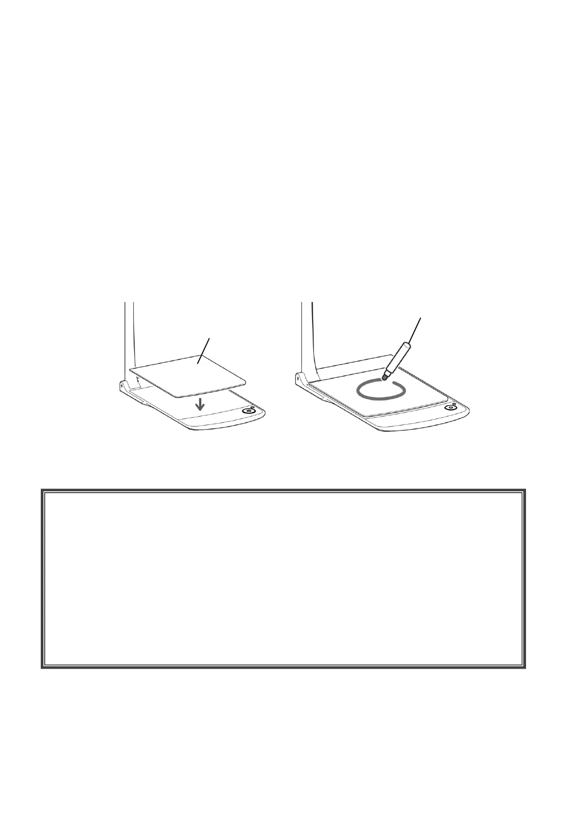 By placing the supplied whiteboard sheet on the stage, you can draw directly on the sheet with a