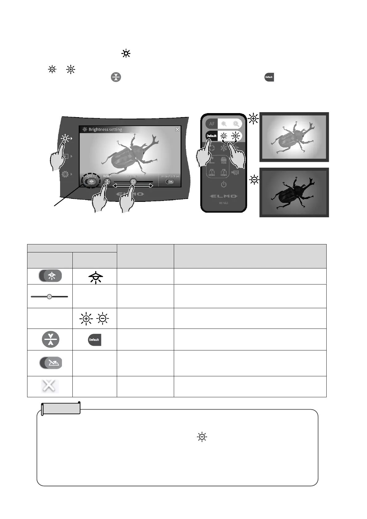 adjustment. The image brightness can be adjusted by sliding the bar to the right or left, or by using