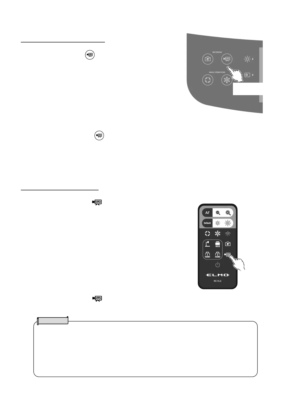 ③When the Recording button [ ] on the remote control is pressed again, video recording stops and the mark