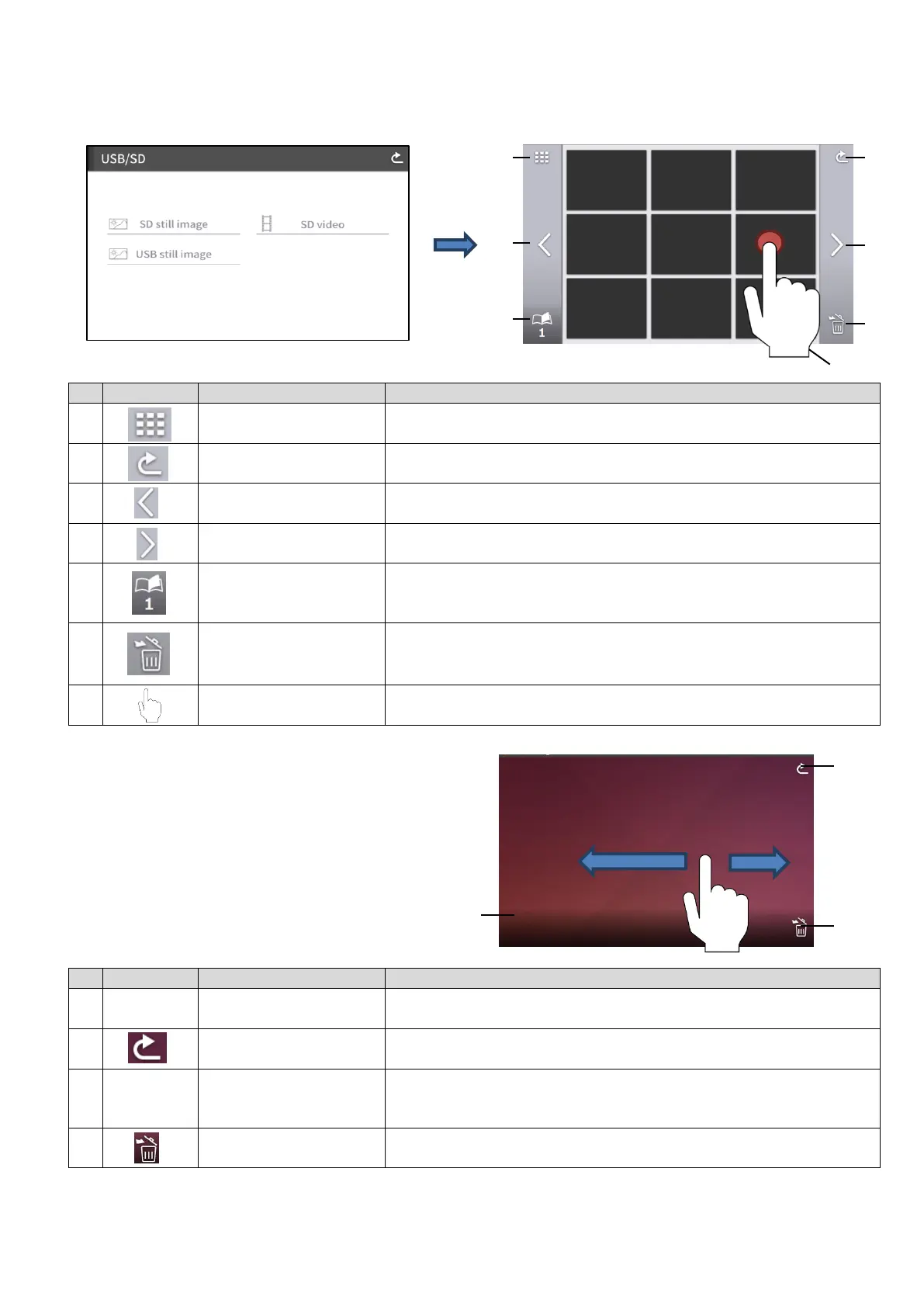 SD still image still image / SD video / USB still image (list of thumbnails)
