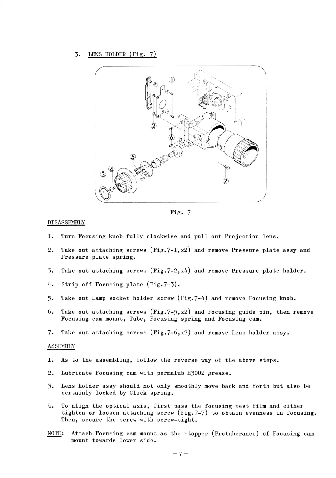 Elmo ST-1200 - 3. LENS HOLDER (Fig. 7)