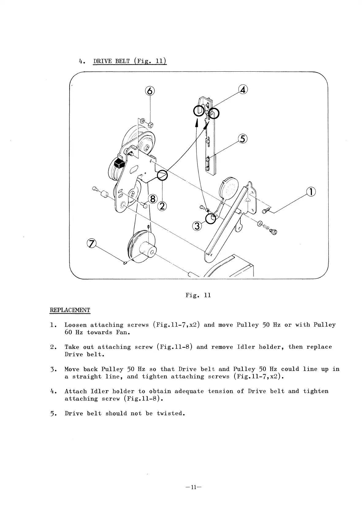 Elmo ST-1200 - 4. DRIVE BELT (Fig. 11)
