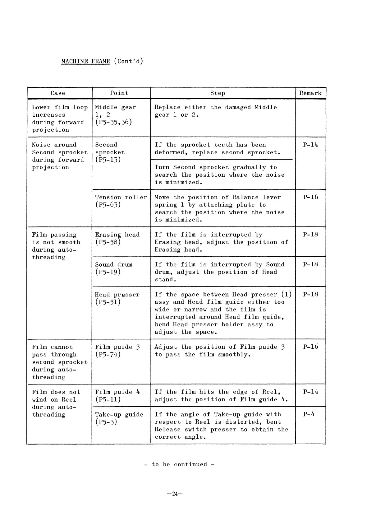 Elmo ST-1200 - Lower film loop increases during forward projection; Noise around Second sprocket during forward projection; Film passing is not smooth during auto-threading; Film cannot pass through second sprocket during auto-threading
