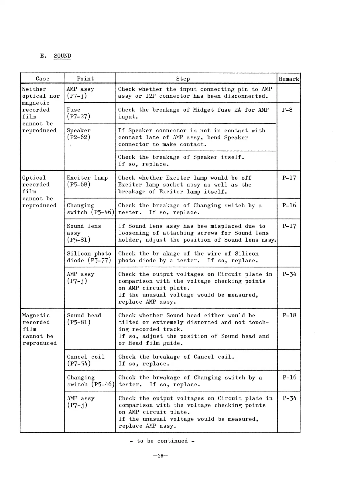 Elmo ST-1200 - E. SOUND; Neither optical nor magnetic recorded film cannot be reproduced; Optical recorded film cannot be reproduced; Magnetic recorded film cannot be reproduced