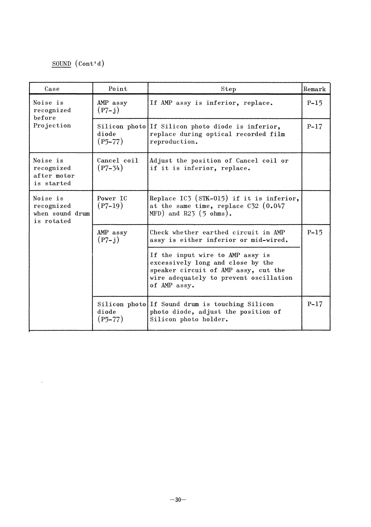 Elmo ST-1200 - Noise is recognized before Projection; Noise is recognized after motor is started; Noise is recognized when sound drum is rotated