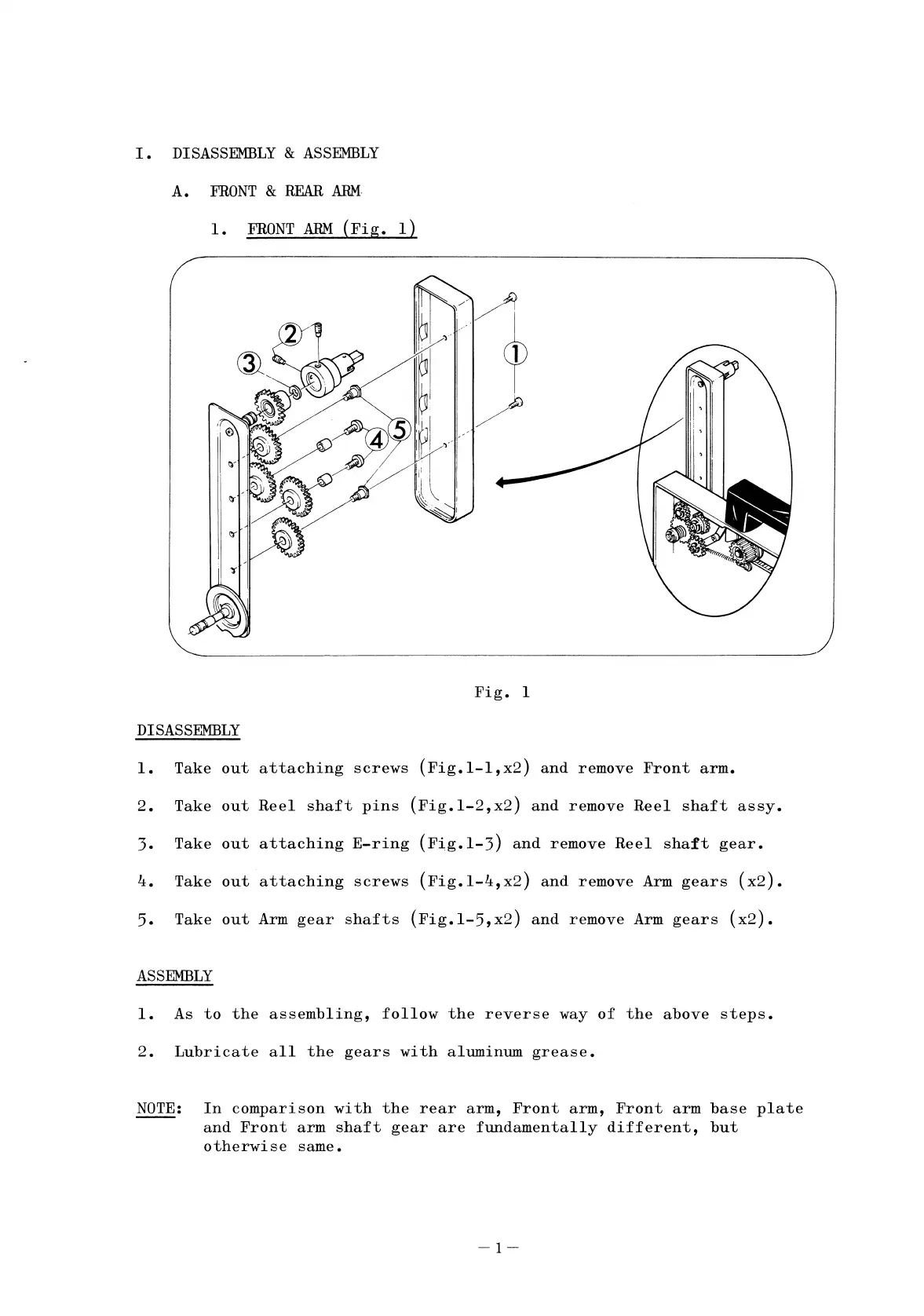 Elmo ST-1200 - I. DISASSEMBLY & ASSEMBLY; A. FRONT & REAR ARM; 1. FRONT ARM (Fig. 1)