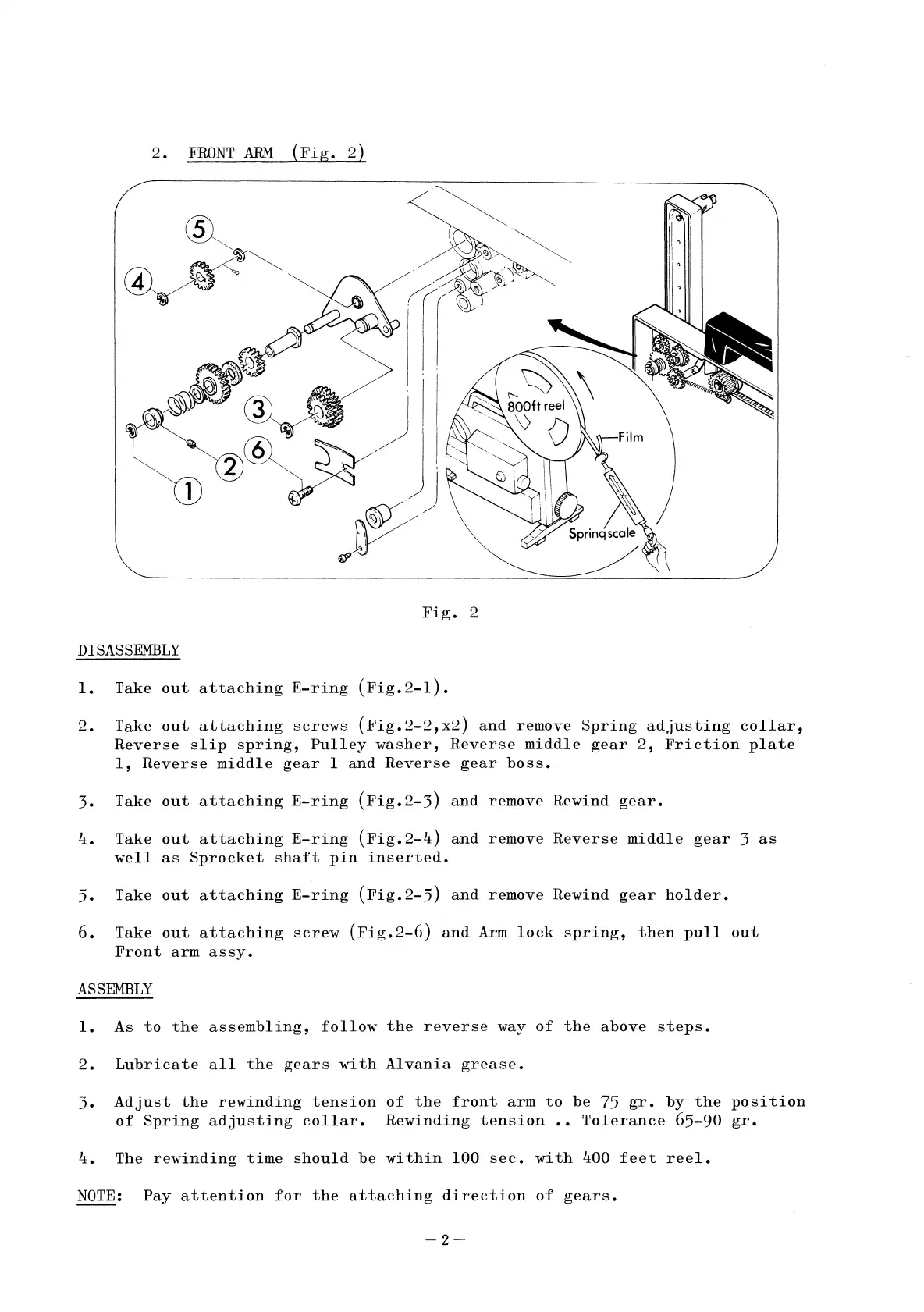 Elmo ST-1200 - 2. FRONT ARM (Fig. 2); B. PROJECTION LAMP & LENS