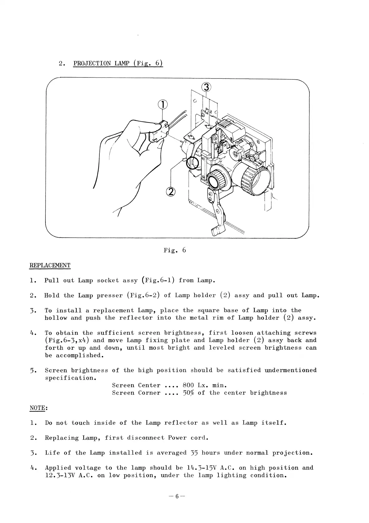 Elmo ST-1200 - 2. PROJECTION LAMP (Fig. 6)