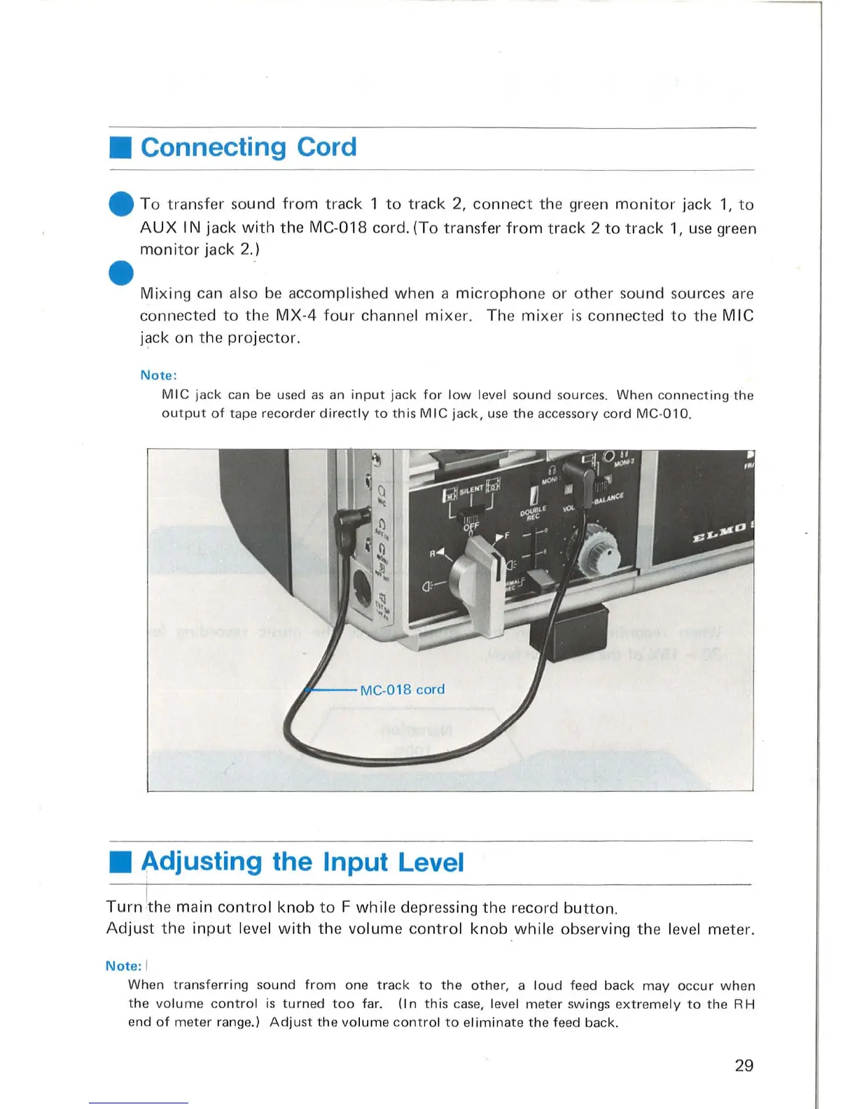 Elmo ST-600D - Adjusting the Input Level
