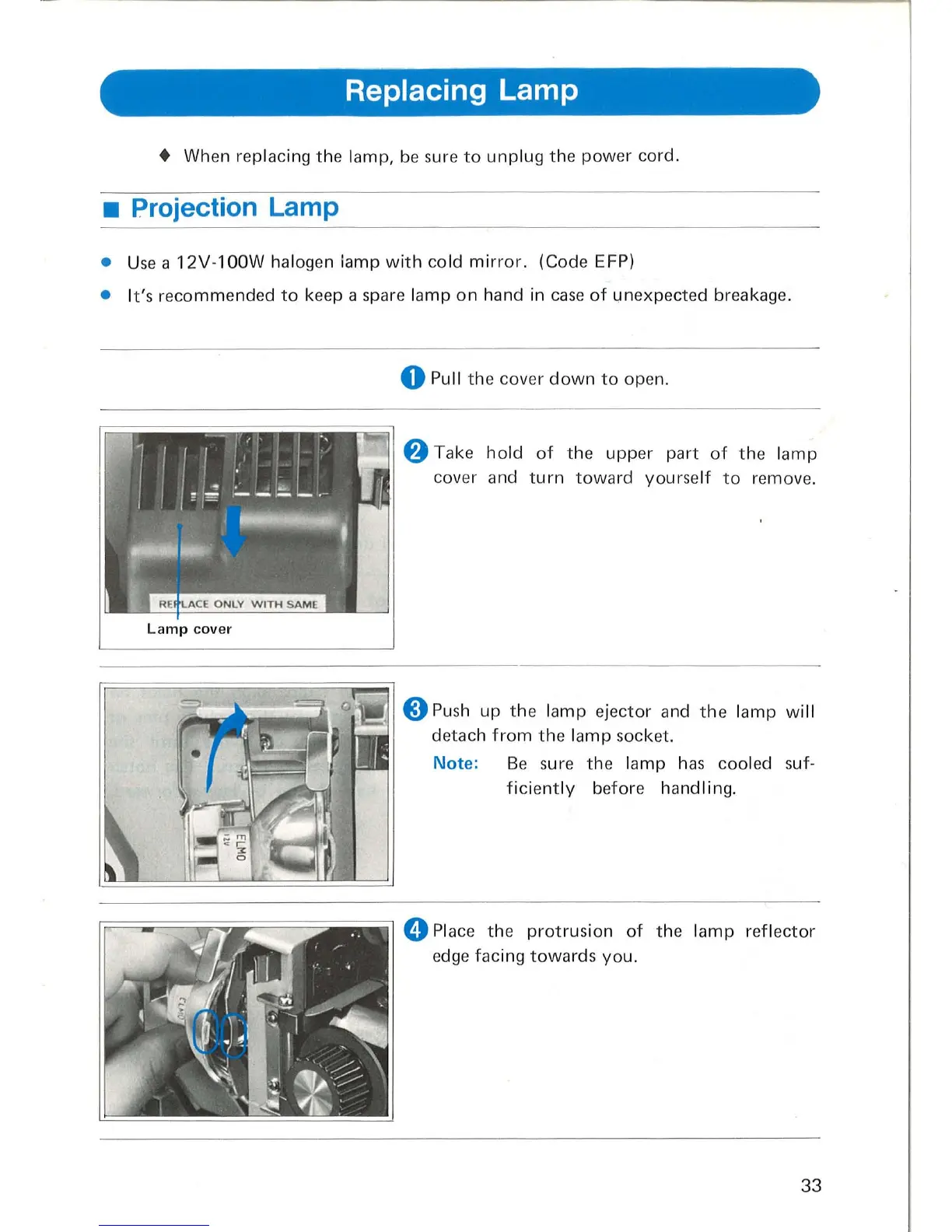 Elmo ST-600D - Replacing Lamps; Replacing the Projection Lamp