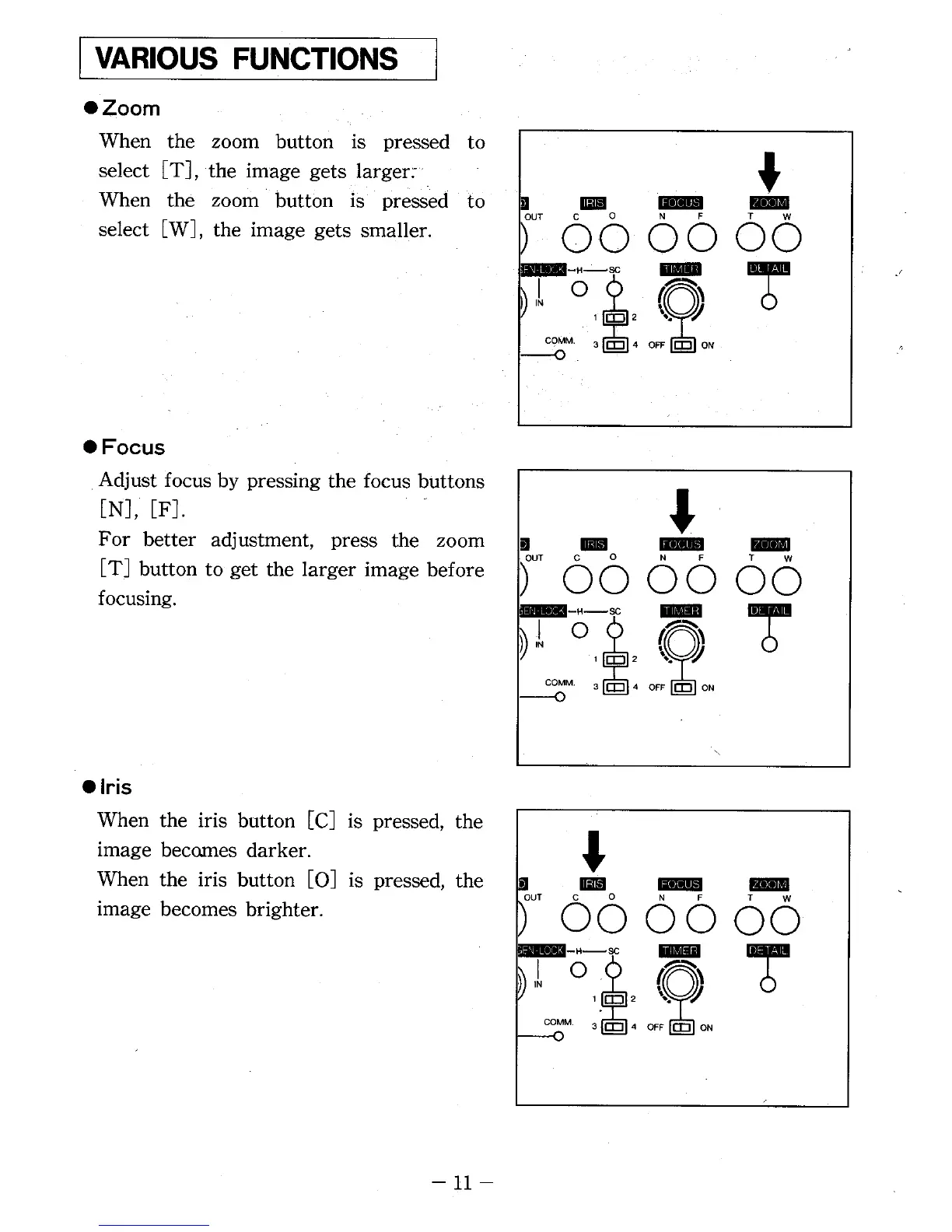 Elmo TRV-35H - Various Functions; Zoom; Focus; Iris
