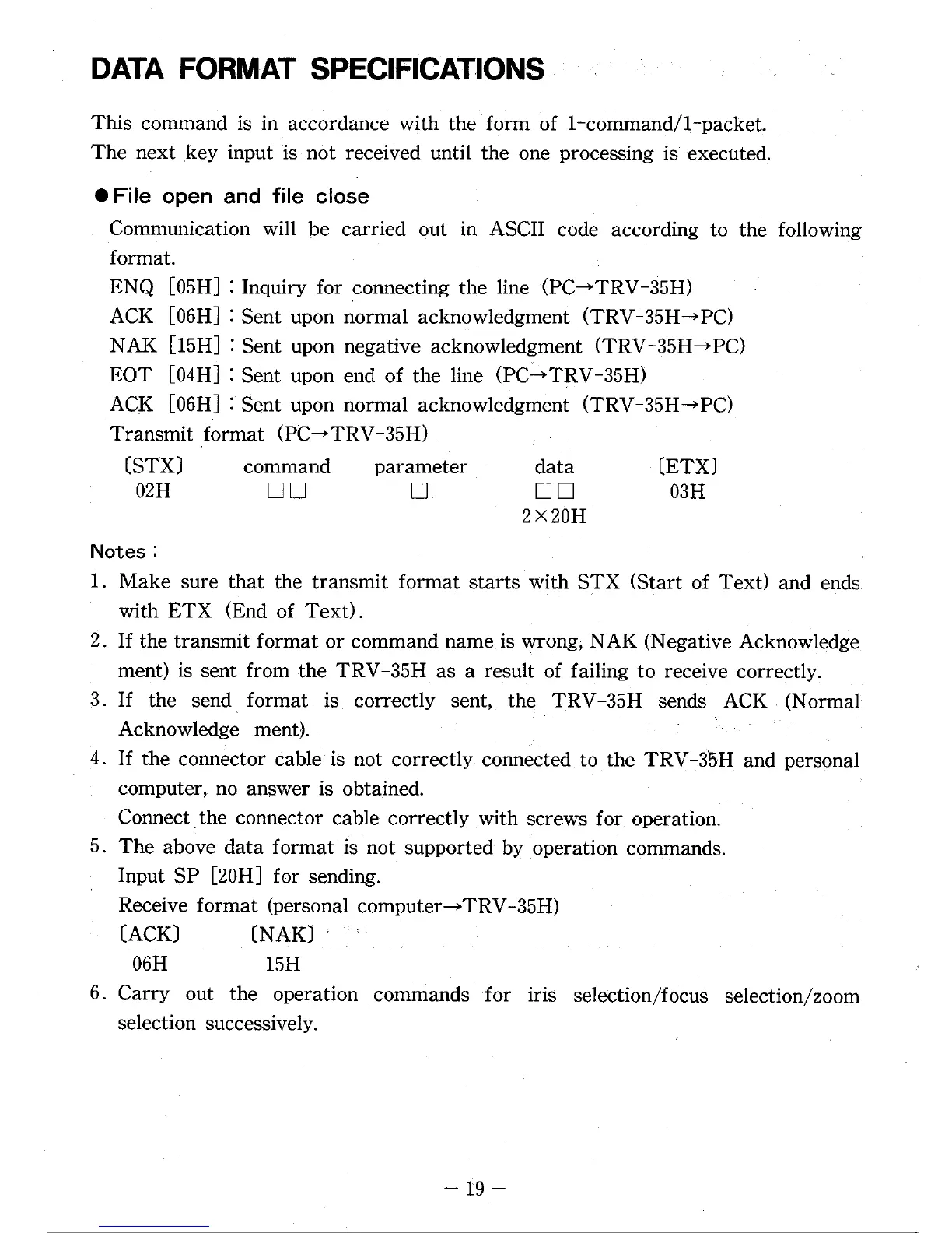 Elmo TRV-35H - Data Format Specifications; File Open and File Close
