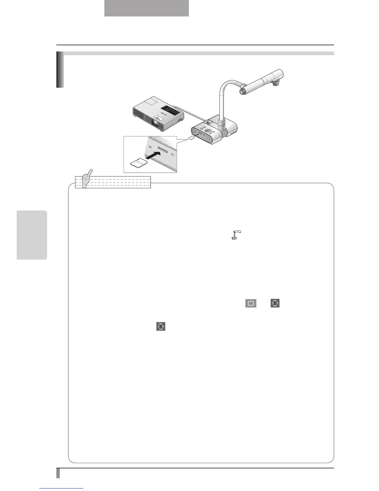 ELMO is not liable for any damage caused by the loss of the data in the SD card or