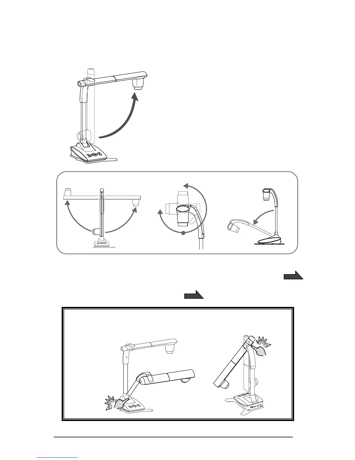 ※In order to prevent the damage to the camera head, pay attention to the position of the