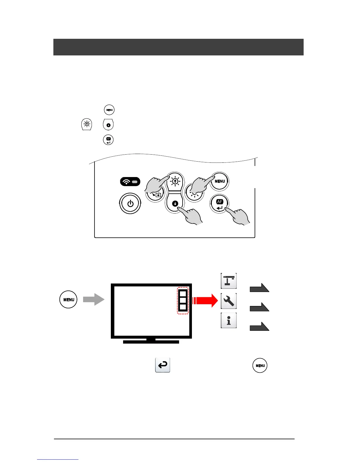 ①Press the [ ] button on the operating panel to display the OSD menu, and then use the