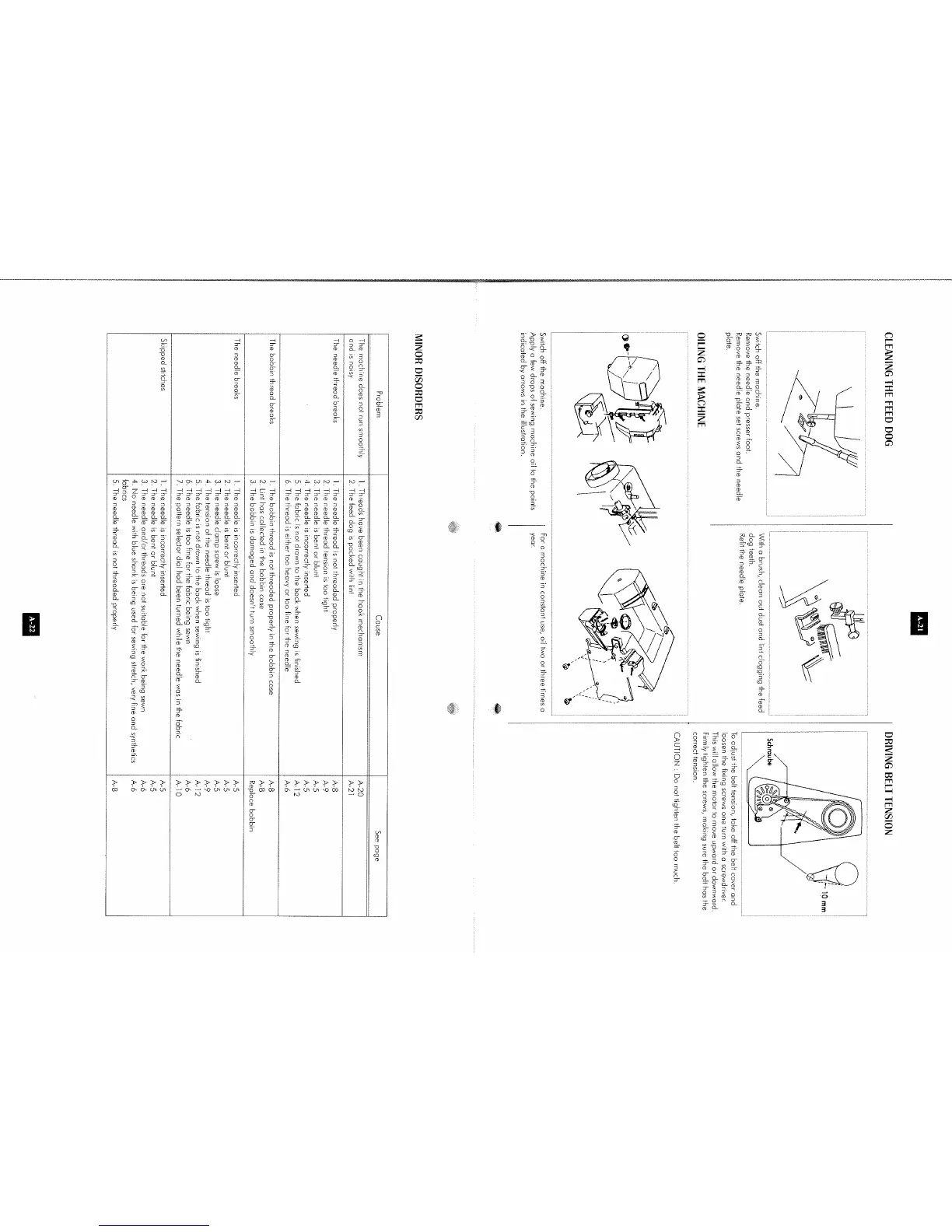 ELNA 2002 - Cleaning the Feed Dog; Oiling the Machine; Minor Disorders; The machine does not run smoothly and is noisy