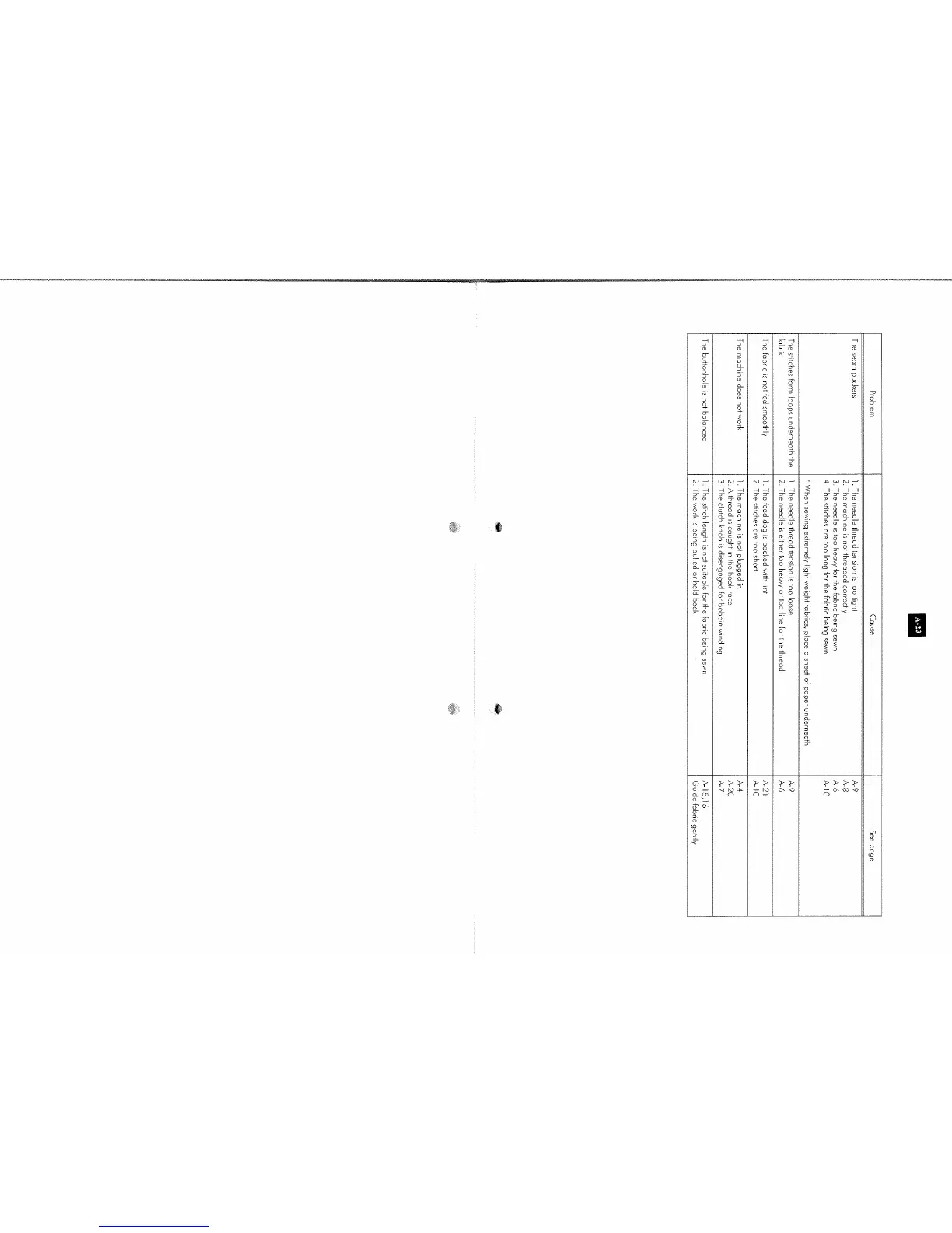 ELNA 2002 - Minor Disorders; The seam puckers; The stitches form loops underneath the fabric; The fabric is not fed smoothly