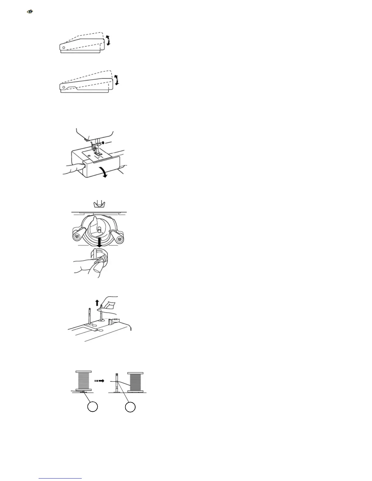Pull up spool pin(s) to place thread spool. Push