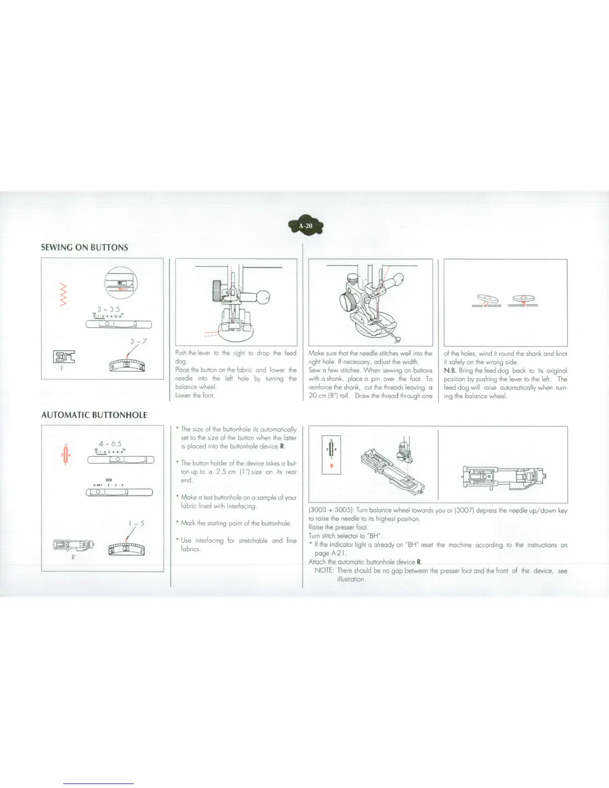 ELNA 3003 - BUTTONHOLE SEWING; Automatic Buttonhole Procedure