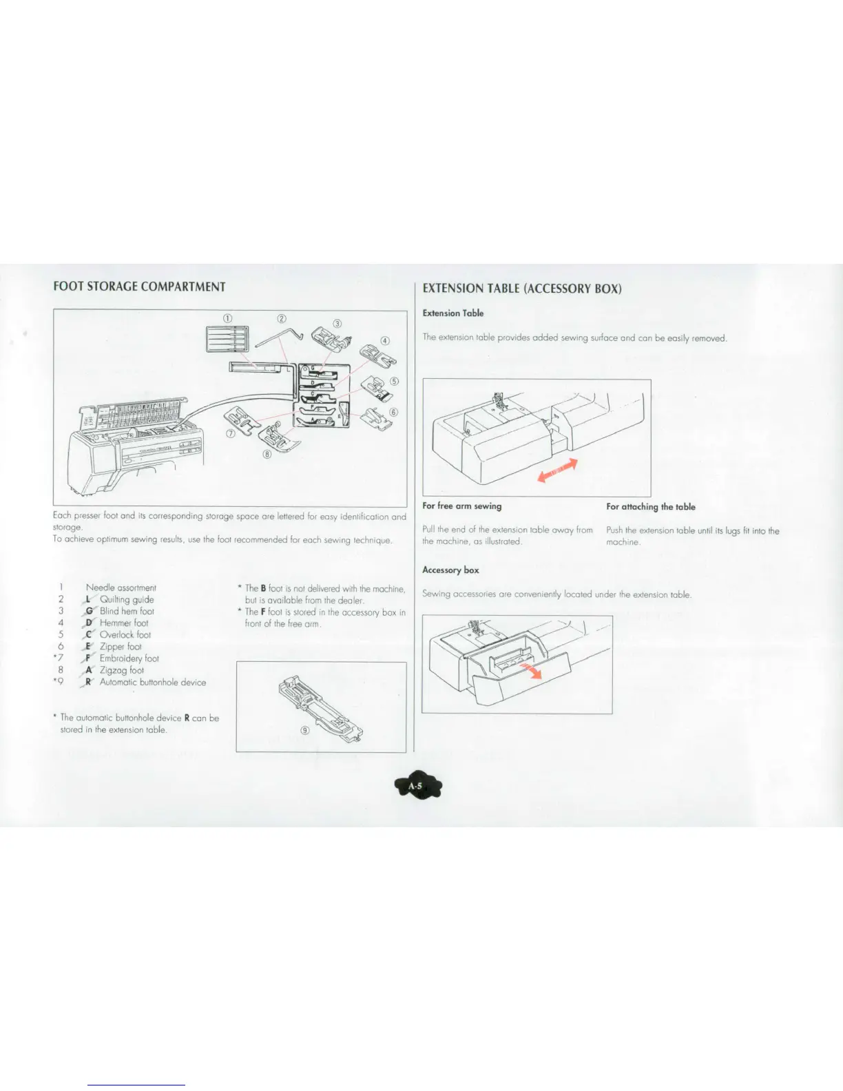 ELNA 3005 - Foot Storage Compartment; Extension Table (Accessory Box)