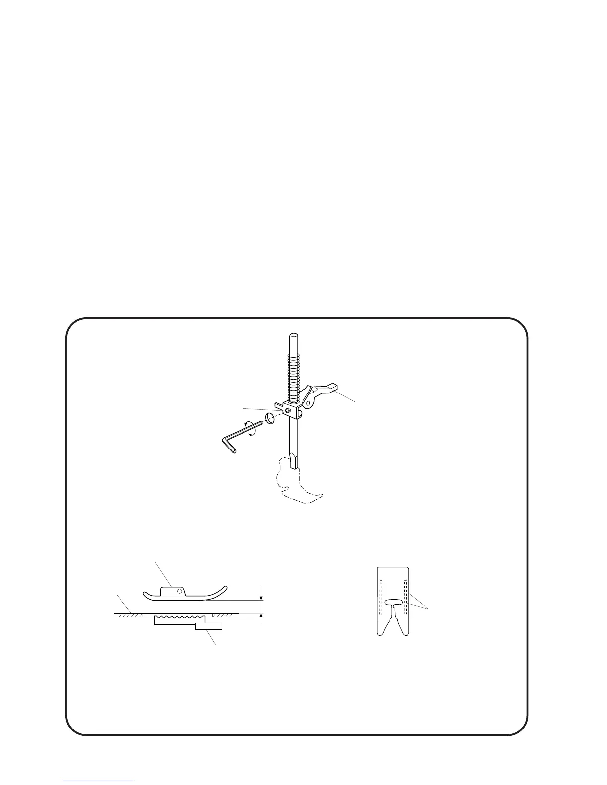 2 Lower the feed dog below the needle plate. Place a block 6 mm thick under the presser foot